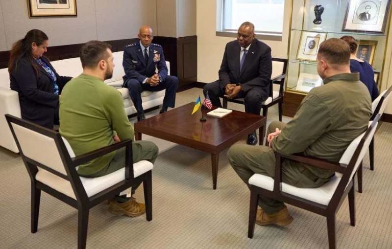 Президент України Володимир Зеленський здійснив важливу зустріч з міністром оборони США Ллойдом Остіном та головою Об’єднаного комітету начальників штабів генералом Чарльзом Брауном в Національному університеті оборони США. Обговорення стосувалося ряду ключових питань, що включають розвиток ситуації на фронті та майбутню співпрацю між Україною та Сполученими Штатами в галузі оборони.