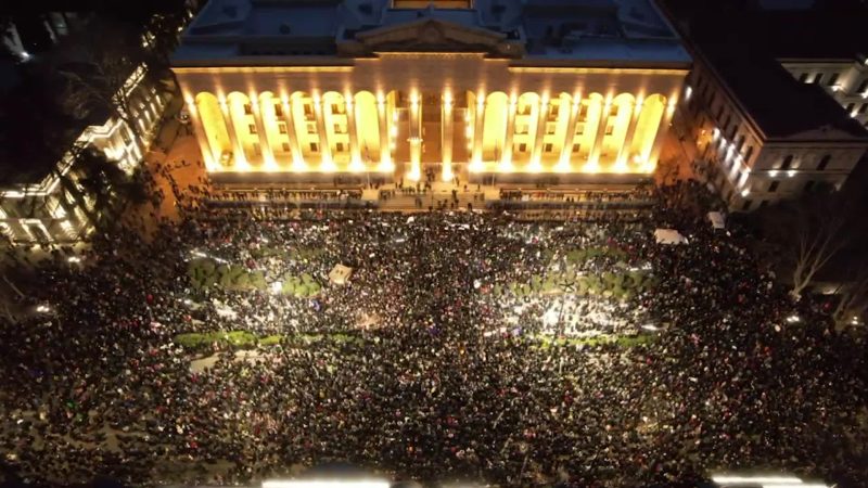 У Тбілісі триває акція протесту проти відмови уряду Грузії від європейського курсу та відмови від інтеграції до ЄС. Протести набирають сили, і ситуація вже призвела до значних зіткнень з поліцією та серйозних міжнародних наслідків. Демонстранти, які виступають проти урядової політики, застосовують все більш радикальні методи, зокрема фаєри, барикади та інші форми прямої дії.